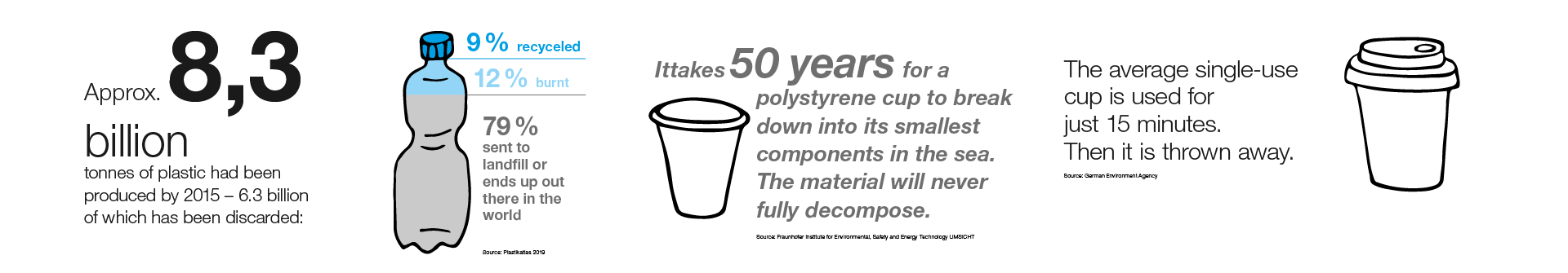 Our planet is drowning in plastic waste. And disposable cups are a big part of the problem. Both the general public and politicians are becoming more aware of this risk. All over the world. Even alternatives that claim to be environmentally friendly don’t provide the solution the world needs. To the contrary: They require more energy and resources, and still produce waste.