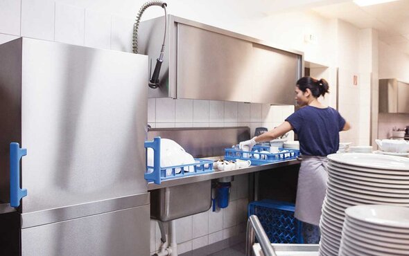 The crucial time to deal with problems in the dishwashing area is...during the planning phase. We definitely recommend working with an experienced kitchen planner. They will analyse the size of the room, test the efficiency of the processes and compare everything with the volume of washware to be handled. Moreover, they will take into account important work steps such as food-waste disposal and issues including hygiene requirements and ergonomics. All of this is advantageous for company and employees alike.