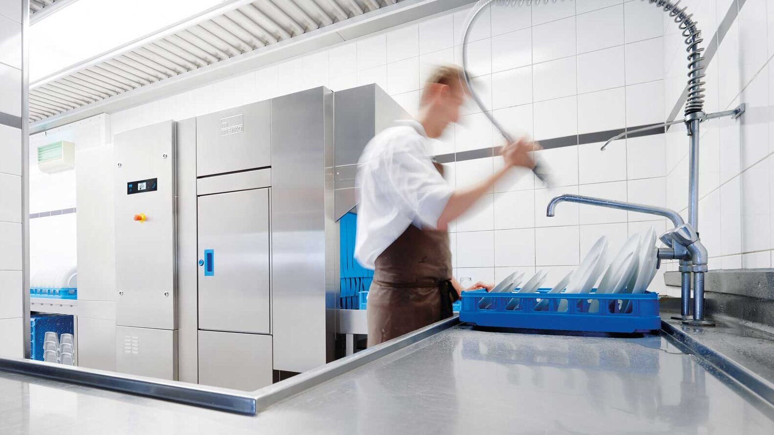 It's Saturday night, 9 pm, restaurant rush hour. The chefs are placing beautiful fish filets, rice and vegetables on clean plates while waiters are bringing dirty dishes back to the kitchen – at least a batch a minute. While all that is going on, your automated colleague, the dishwasher is once again running at full speed this evening. It was a spur-of-the-moment purchase the owner slipped on an extra special offer last month. That bargain unexpectedly gives up at 9:30 pm – and causes panic in the kitchen.