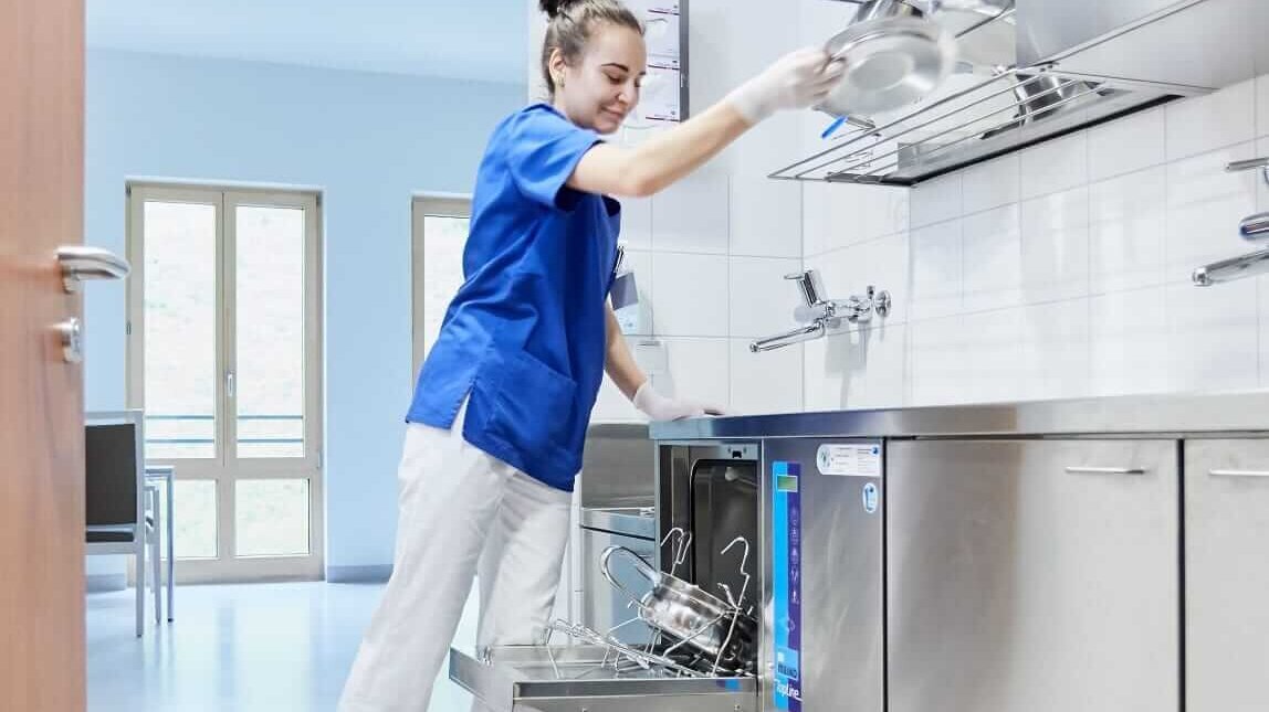 For this purpose, the test virus was applied to urine bottles and bedpans, which were then cleaned and disinfected in the MEIKO TopLine using the intensive programme, which includes a total of five cleaning steps plus a final thermal disinfection stage with an A0 value of 3,000. The results revealed a greater than four-log reduction in the test virus load, equivalent to a reduction in pathogens of over 99.99 percent. In other words, after processing, the care utensils no longer posed any risk of infection within the definition of DIN EN 17111.