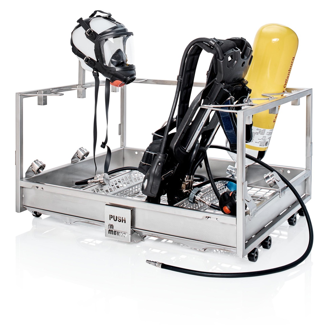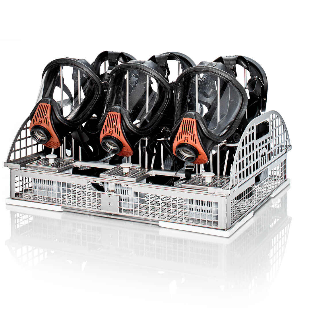 The rack system for TopClean appliances is used to pre-clean, clean and disinfect BA masks, regulators, self contained breathing apparatuses and more.
