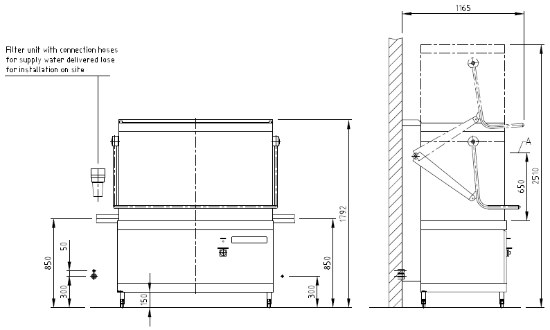 Dimensions (W x Hmin x D)1490 (1600) x 1792 x 995 (1100) mm (mit Haubenbüge mm