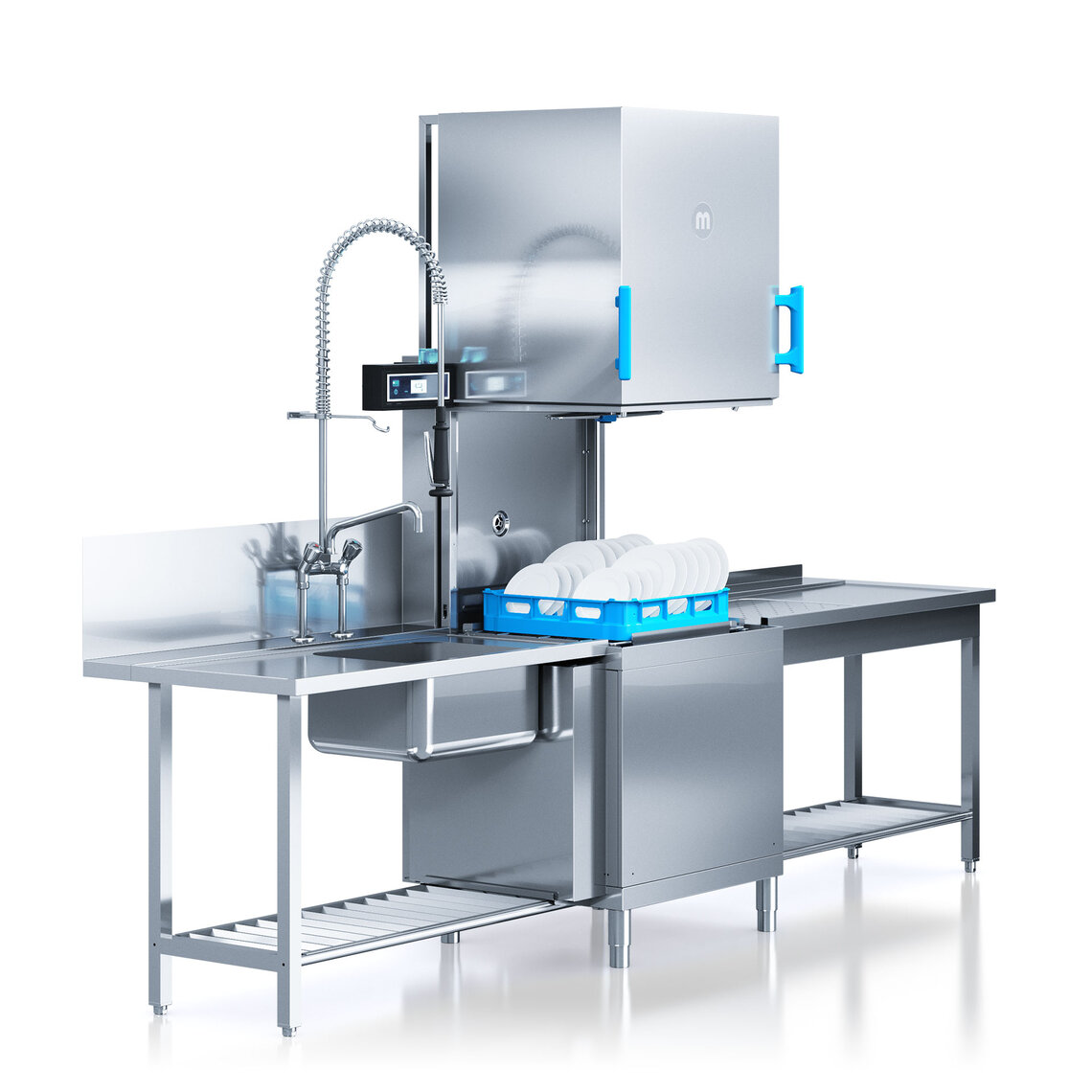 The M-iClean H hood type dishwasher is the ultimate benchmark for user-friendly, ergonomic operation, cleanliness and efficiency: shorter cycle times, faster drying and lower staff costs. Welcome to dishwashing paradise!