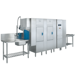 What's the secret to faster, cleaner results? In the UPster K-M 250 rack type dishwashing machine it's a pre-wash zone which allows it to handle considerably more racks per hour. An extra large passing height makes it easy to clean large trays and pots. The speedy solution for outstanding results.