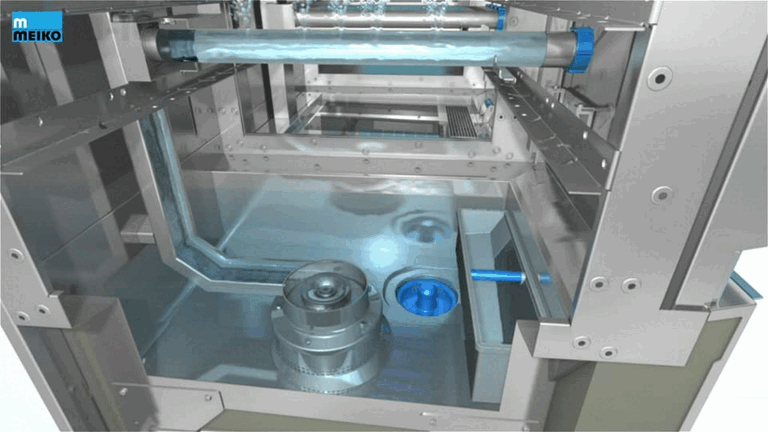 But what's so important about it? Filtered food waste is actively removed from the warewashing process. How does that work? The filter collects food residue from the water and periodically washes it out of the tank – without requiring any additional water.