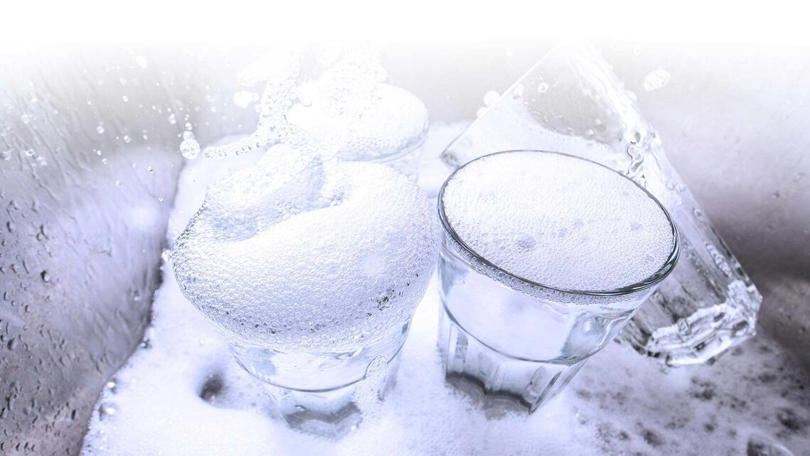 漂洗区的功能是清洗残留在碗碟上脏污的洗涤水,与洗涤水不同,漂洗水不是循环使用的。当漂洗区内有洗涤水残留时,则会影响餐具的清洗效果。而这种问题的造成可能由于洗碗机水帘未挂好/缺失;或者在清洗大件物品时有洗涤水流到漂洗水缸中,导致后方缸体内清洁剂残留。