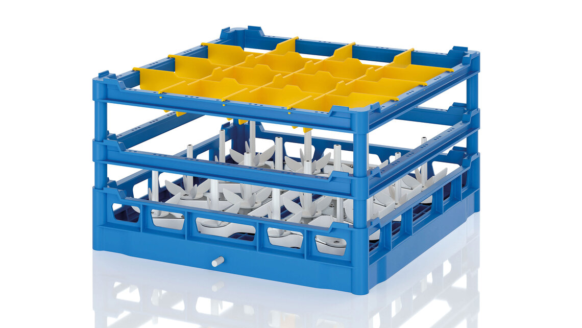 智能化的MEIKO洗瓶筐和适配器是一套简单而有效的解决方案,适用于所有标准大小和形状的瓶子。只需将下洗臂更换为适配器,即可将M-iClean UM/UM+洗碗机更改为台下式洗瓶机。每个洗瓶筐可容纳16个瓶子,清洗周期只需几分钟,高效且迅速。