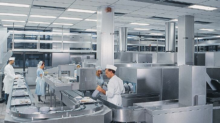 根据工作流程,在食品加工区和洗碗间的任意区域设置垃圾投放口,也可以与洗碗机和传送带有效结合;