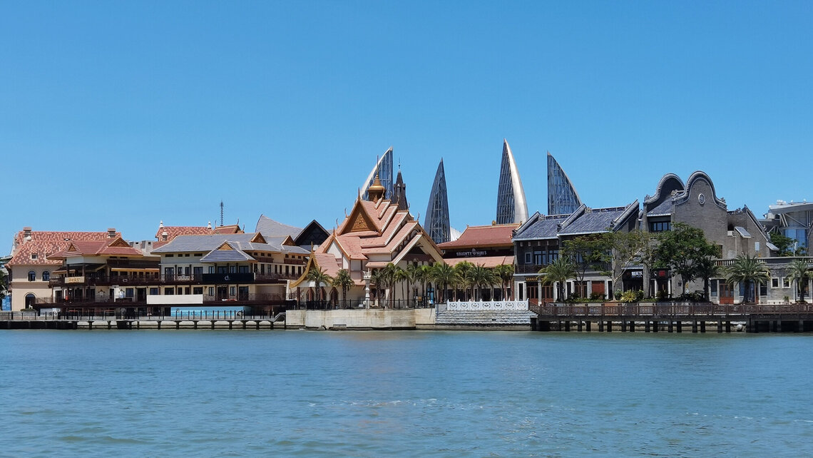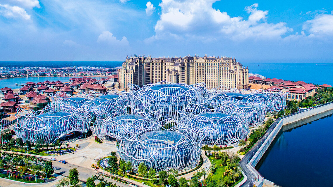 海花岛是一座填海人工岛,由三个独立的离岸岛屿组成,从空中俯瞰就像盛开在海上的花,而中间的1号岛就是一站式国际旅游度假区。