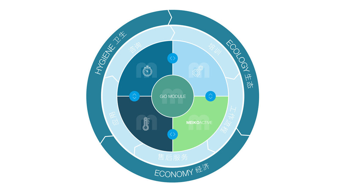 本次展会,MEIKO将推出一系列全新的化学制剂“MEIKO Active”,以完善MEIKO清洗方案闭环。在MEIKO Active的作用下,更全面的清洗流程将得以实现。因此,以接触时间、温度、机械力和化学制剂等构成要素为基础的清洗循环,其范围也将扩大到覆盖咨询、培训、流程规划、售后服务等其它方面,远不止于‘清洗’。