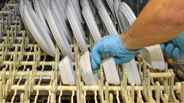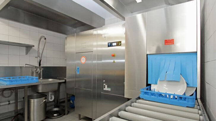 因此,对于关键的餐具卫生盲点,食堂可使用专业餐具洗涤设备,保证餐具能够在正确的温度、清洗时间、水压以及有效的清洁剂浓度等条件下,实现可靠的清洗、消毒和烘干流程,保障餐具具备卫生的重复使用和存放条件。