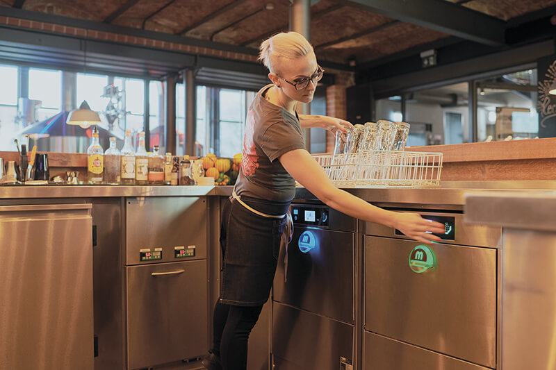 M-iQ 展示了,当今的篮传送式洗碗机具有哪些优势:每小时清洗多达 225 个篮子,同时节能节源,并在操作舒适性和人体工程学方面获得好评。