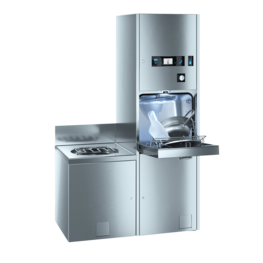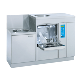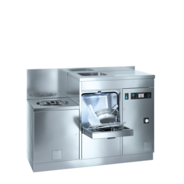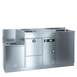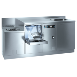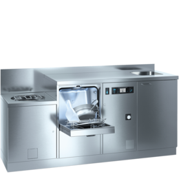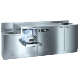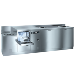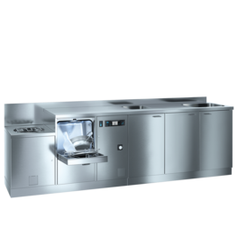 MEIKO 配有独立式或台下式设备的不锈钢配套组合有各种版本可供选择,适用于目前主流的各种室内条件和要求。因为仅靠清洗消毒机还无法造就功能完备的护理工作室。它还需要充足的操作台面、储物空间和盥洗池,以确保作业流程的顺利进行。