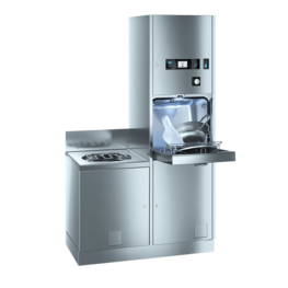 作为前端装载机,预清洗机 TopClean D 可以在篮筐伸出的情况下更方便装载。另一个符合人体工程学的优点为:热回收减少了蒸汽排放,促进了呼吸防护车间内舒适的室内温度与湿度。