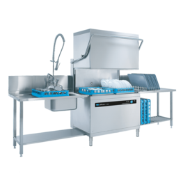 UPster ® H 500 M1:更强力且十分便利的传递技术。此款传递式洗碗机以起步价格提供持续动力和洗涤便利。打开洗碗机罩盖时不会产生蒸汽团,同时具备便捷的自动启动功能。借助 440 mm 的传递高度,UPster H 500 M1 成为大盘子、餐盘和托盘等高件洗涤用具的理想选择。