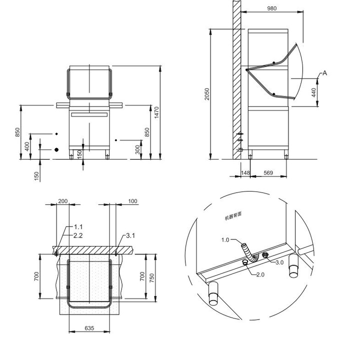 ⾼洗涤效能、低运作费⽤,良好的性能,满⾜锅、碗、瓢、盆、等⼤尺⼨物品的⾼标准洗涤要求。